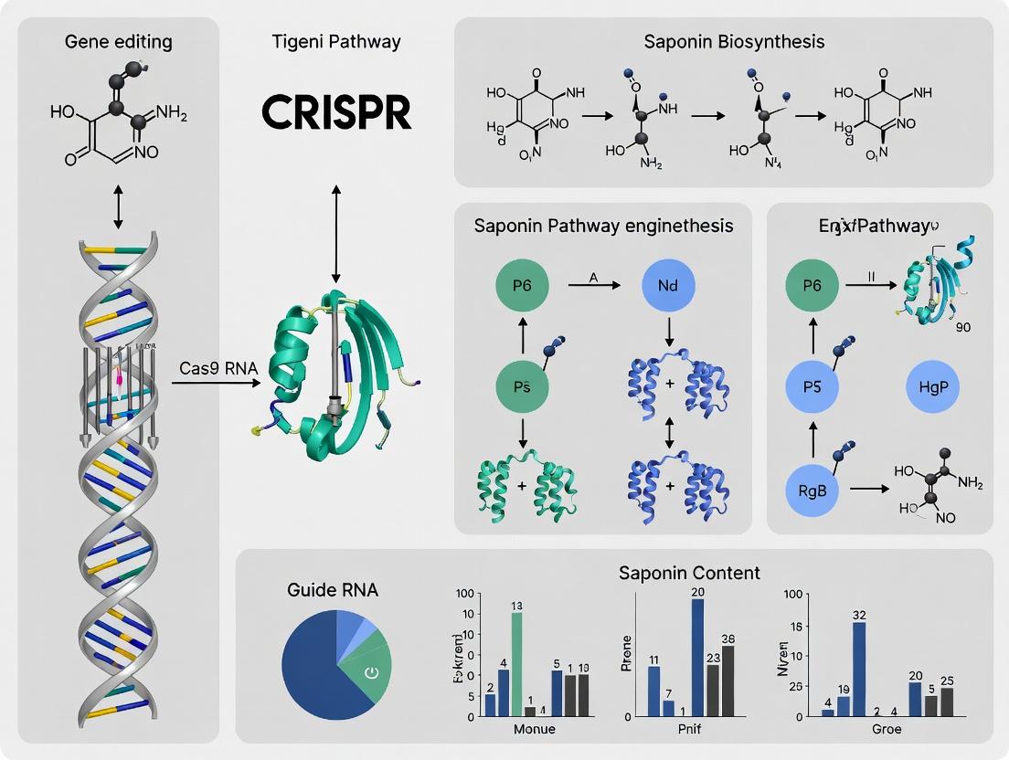 This article provides a comprehensive guide for researchers and drug development professionals on leveraging CRISPR-Cas gene editing to engineer the complex saponin biosynthetic pathway. We explore foundational concepts of saponin biology and CRISPR mechanics, detail methodological approaches for targeted pathway manipulation, address common troubleshooting and optimization challenges, and compare validation techniques to assess engineering success. The scope encompasses strategies to enhance saponin yield, diversity, and bioactivity for next-generation pharmaceuticals, nutraceuticals, and agricultural products.
