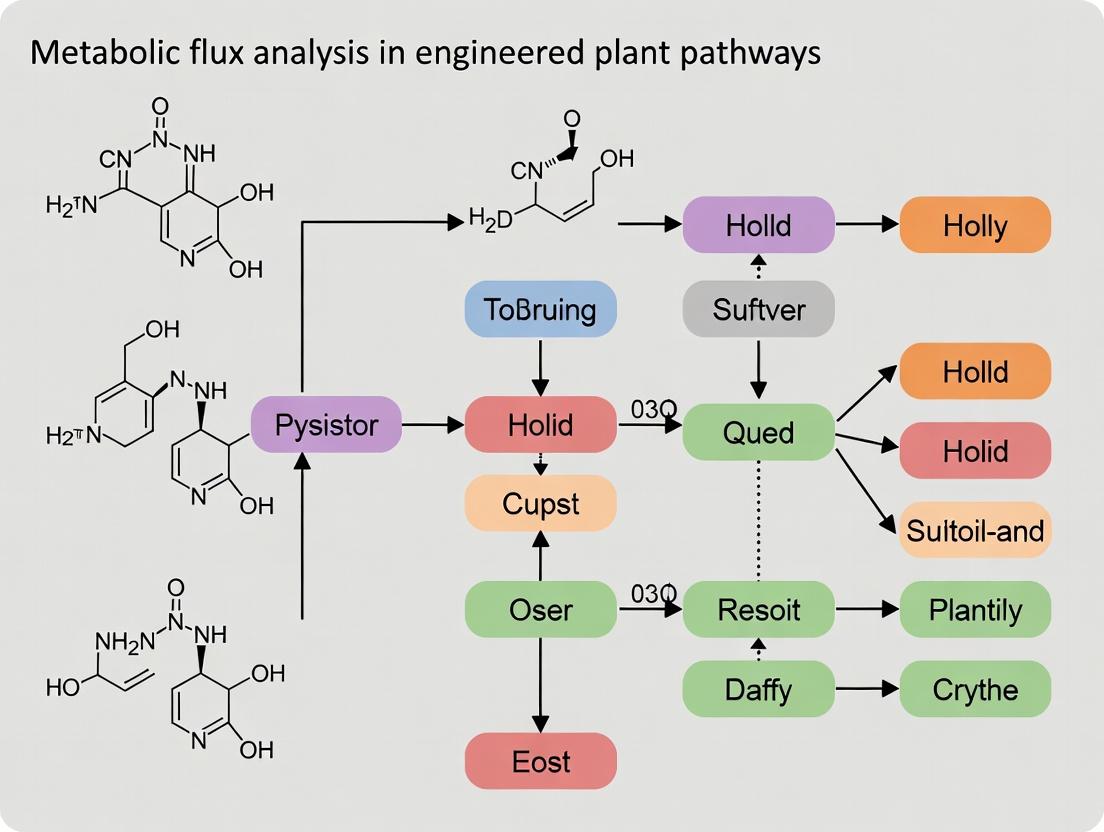 The sustainable production of high-value pharmaceutical compounds, such as alkaloids, terpenoids, and recombinant proteins, faces challenges in scalability, cost, and environmental impact. Engineered plants offer a transformative solution by functioning as photosynthetic bioreactors. Within the framework of metabolic flux analysis (MFA), plant engineering allows for the precise rerouting of carbon and energy fluxes from primary metabolism (e.g., photosynthesis, glycolysis) toward the enhanced synthesis of desired secondary metabolites or therapeutic proteins. This targeted amplification of specific pathway fluxes is key to achieving economically viable yields.