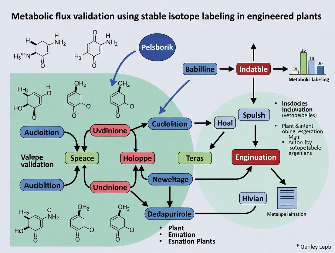 This comprehensive guide explores the application of stable isotope labeling to validate metabolic flux in engineered plants, a critical platform for producing high-value pharmaceuticals and small molecules. We cover the foundational principles of plant metabolic engineering and isotope tracing, detail advanced methodologies from experimental design to MS/NMR data acquisition, provide troubleshooting for common experimental challenges, and compare validation strategies to benchmark performance. Tailored for researchers and drug development professionals, this article serves as a methodological roadmap for confirming pathway functionality and quantifying production yields in plant-based biofactories, thereby accelerating the translation of plant engineering projects into viable biomedical products.